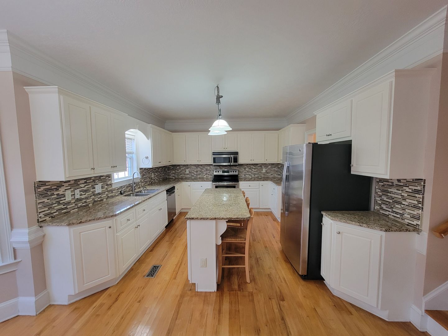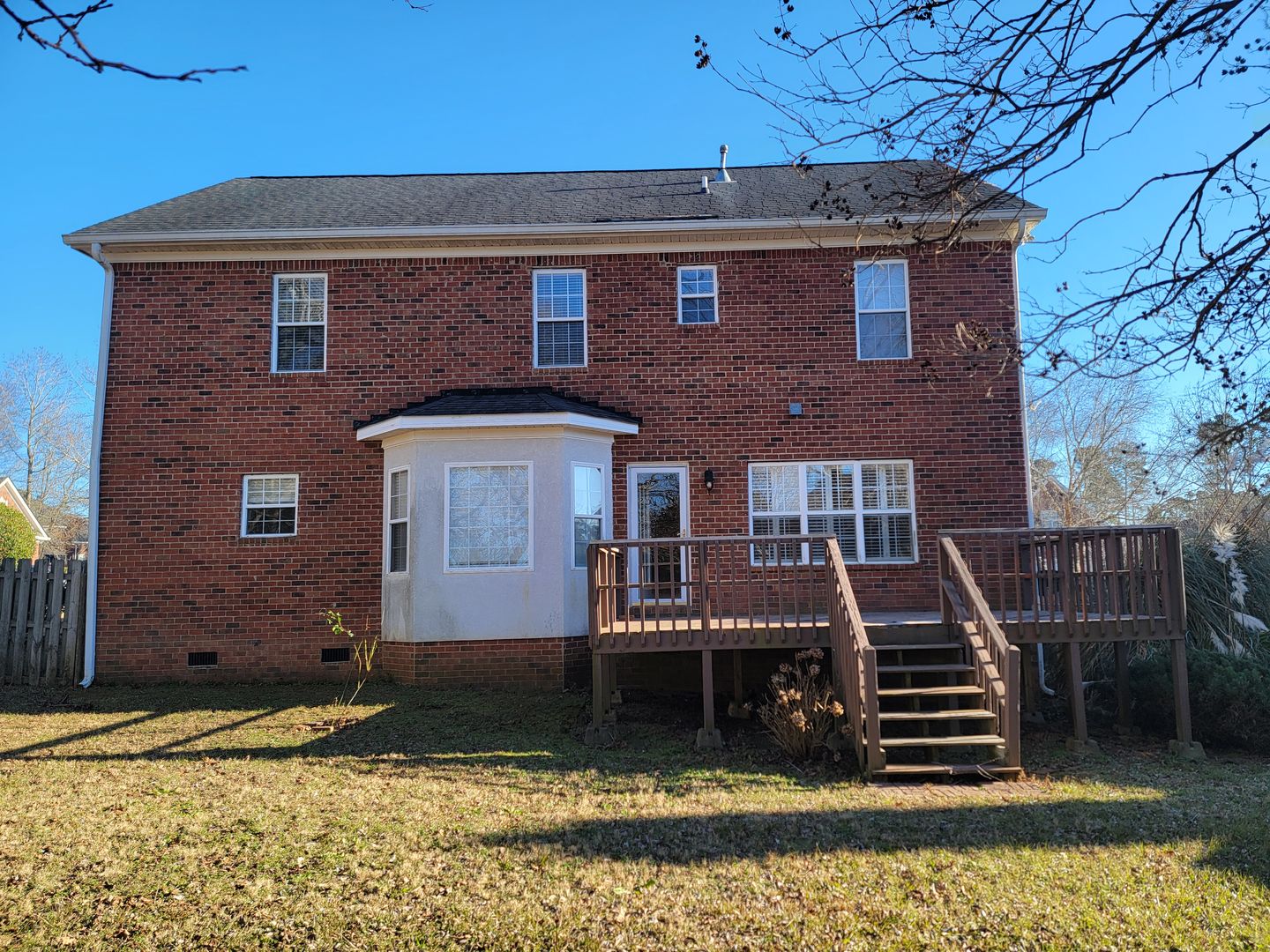 This gorgeous 5 bedroom, 2.5 bath, two story home in a quiet cul-de-sac. The kitchen has stainless appliances, new backsplash and island. The family room has a built in book case on each side of fireplace with gas logs and a wet bar. All bedrooms are upstairs. Master bath with dual vanities, separate shower and whirlpool tub. Large fenced backyard. Deck off family room and a 2 car garage.